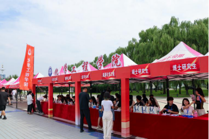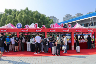 视线转回beat365官方网站院内,beat365官方网站的迎新报到处早已布置妥当:鲜红的欢迎横幅高悬于上空,各专业的报到指示牌一字排开,迎新志愿者们身着统一服装,热情洋溢又一丝不苟地忙碌着,整个报到处俨然一个充满暖意的“迎新营地”。