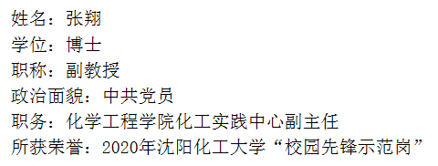 张翔同志是beat365官方网站化工实践中心副主任,一名普通的共产党员,他在平凡的工作中,一丝不苟,默默奉献,受到院校领导和老师以及同学们的赞许和喜爱。多次获院先进个人,优秀共产党员。